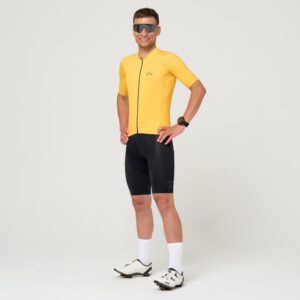 - Aerodynamiczny krój (race-fit) – dopasowanie do sylwetki w pozycji kolarskiej